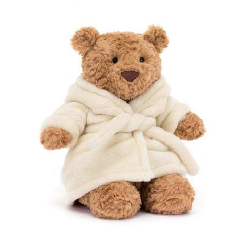 Bring home the ultimate cuddle buddy! This Bartholomew Bear Plush Toy comes dressed in a cozy bathrobe and is made from super soft, skin-friendly plush fabric. At 26cm tall, it’s the perfect size for hugging, decorating, or gifting. Whether for bedtime snuggles or as a holiday surprise, this bear is sure to bring joy to kids and collectors alike.