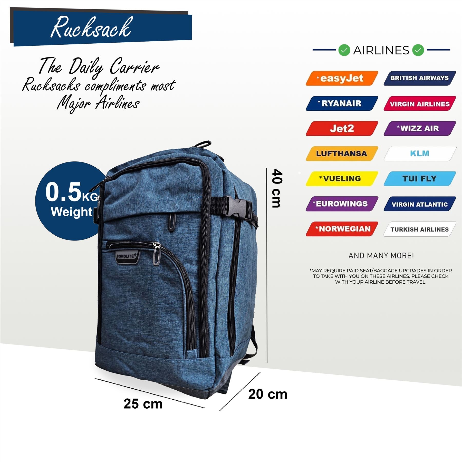 Rucksack Backpack 40x20 x25 cm Underseat Travel Bag for Easy Jet, Ryanair RYANAIR-COMPLIANT AND CABIN-READY: Designed to fit Ryanair's free... Read more Read more