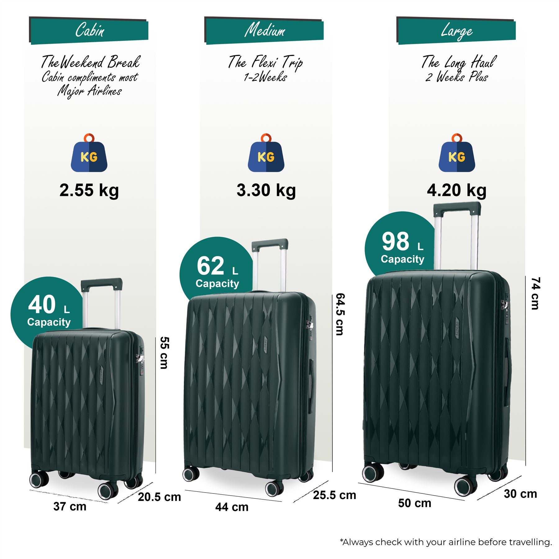 The expansion zip allows you to increase capacity by approximately 20% making room for souvenirs and extra belongings.