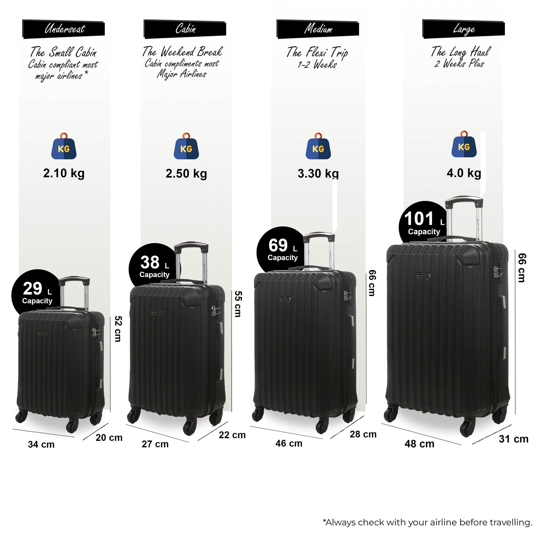• Corowa Set of 4 Hard Shell Suitcase in Black