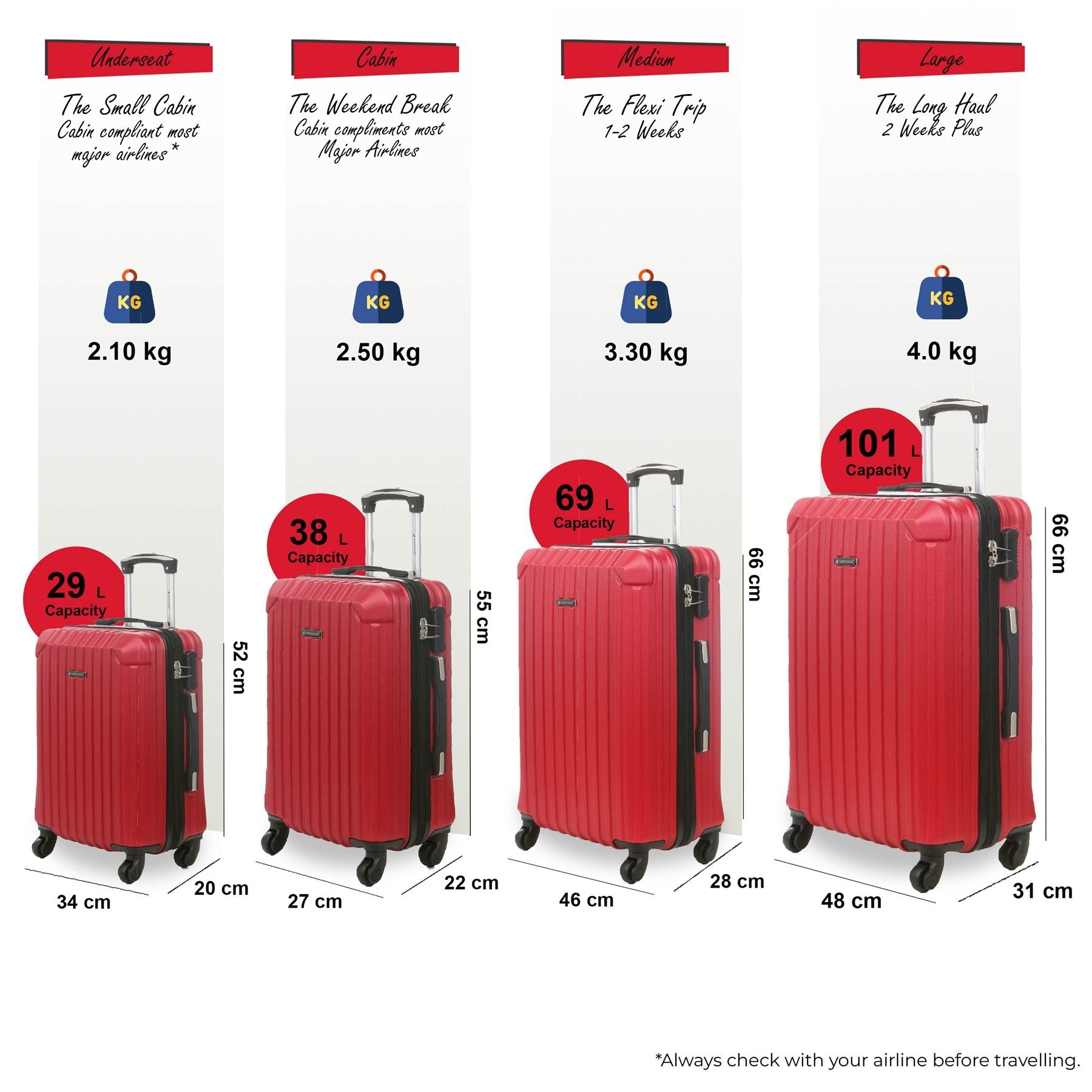 Corowa Set of 4 Hard Shell Suitcase in Red