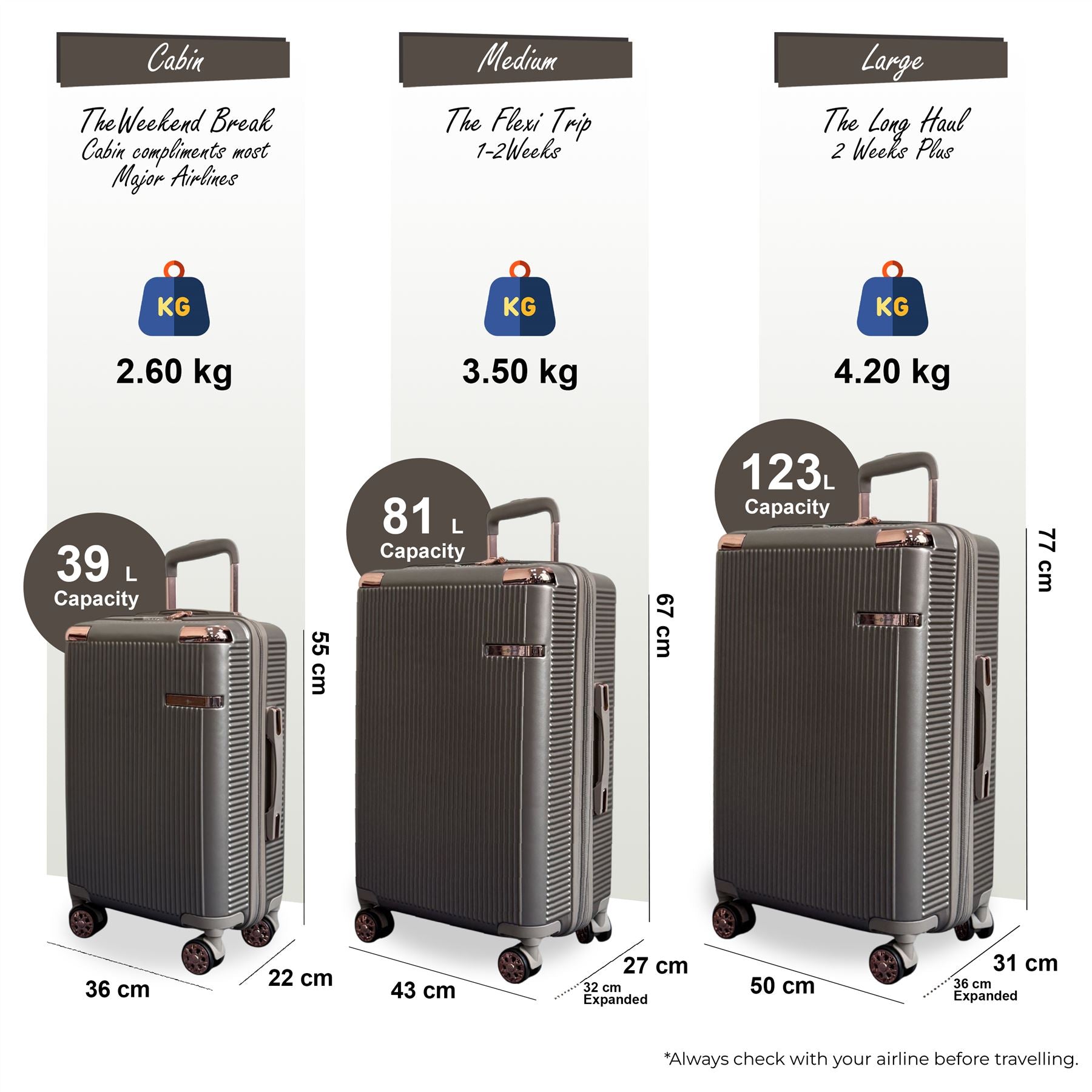 The expansion zip allows you to increase capacity by approximately 20% making room for souvenirs and extra belongings.