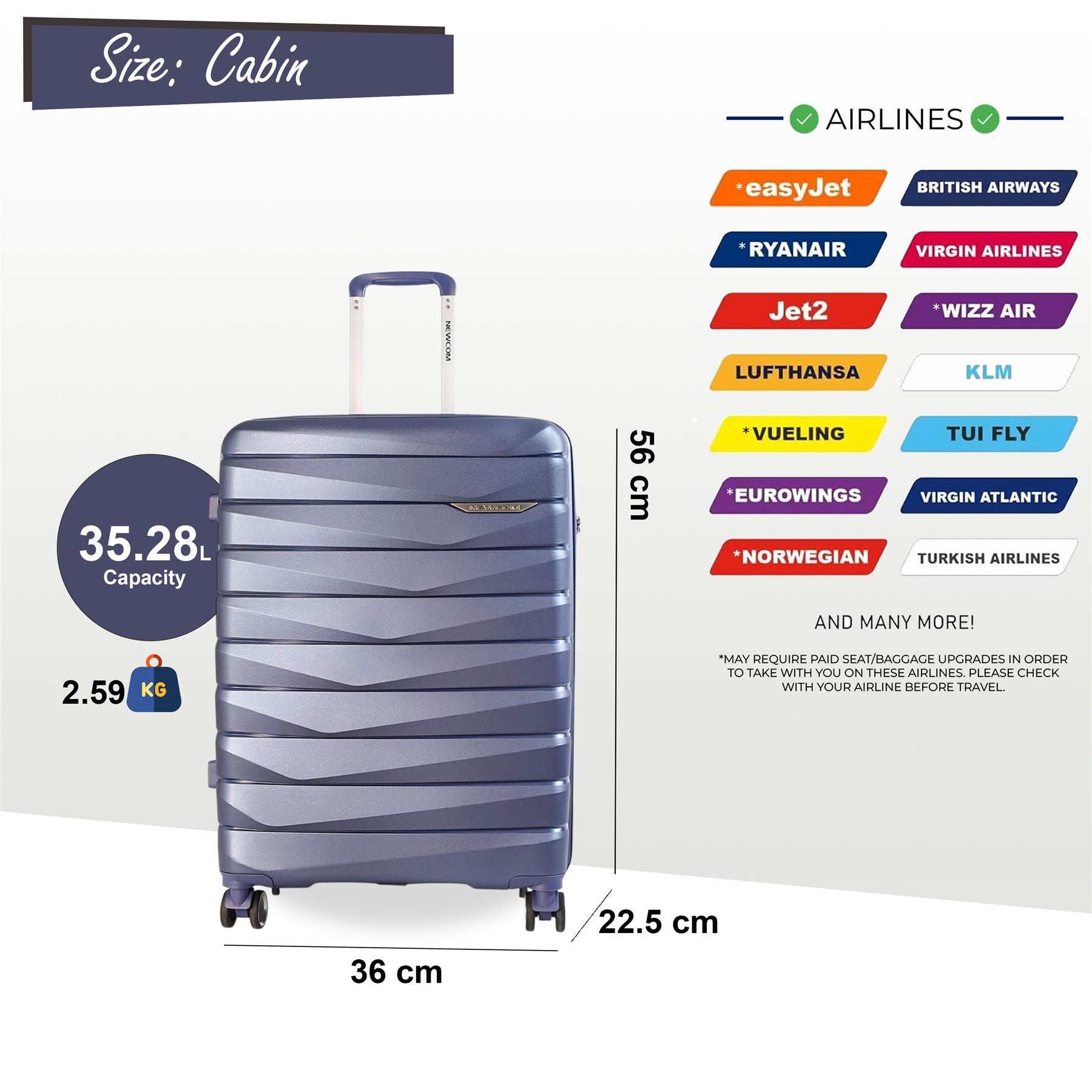 Cabin: Dimensions: 36 x 22.5 x 56 cm Weight: 2.60 kg Capacity: 36L