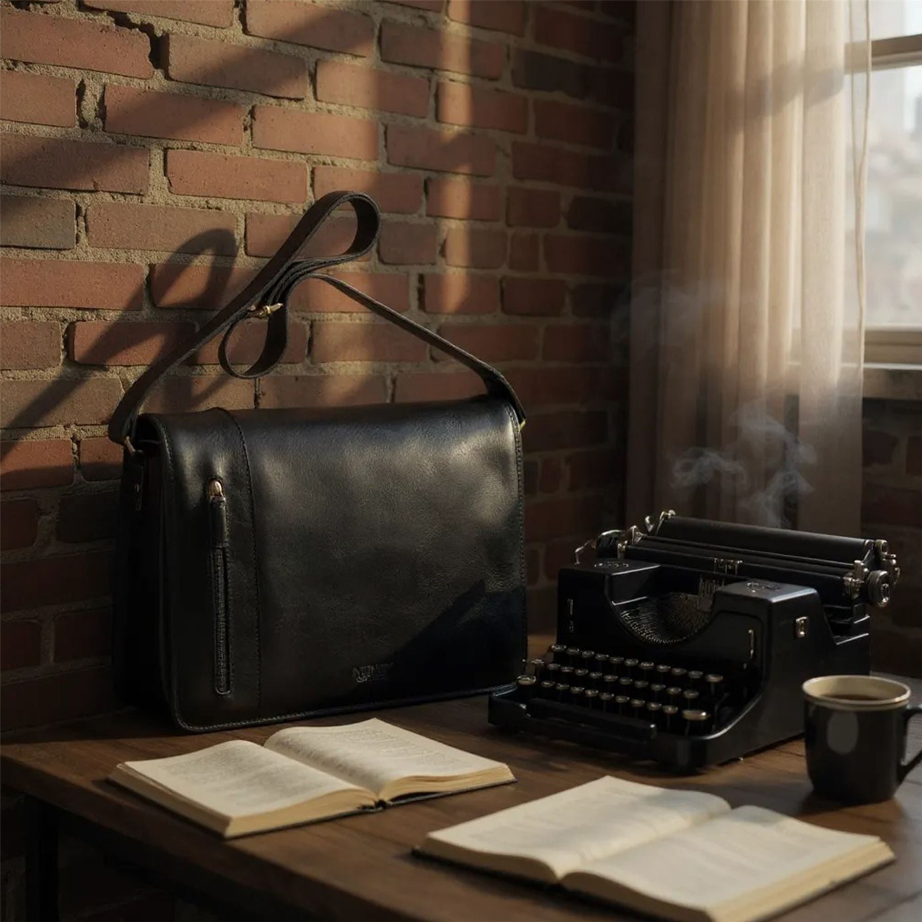 Genuine Leather Black Laptop Satchel Messenger Shoulder Bag - Astor