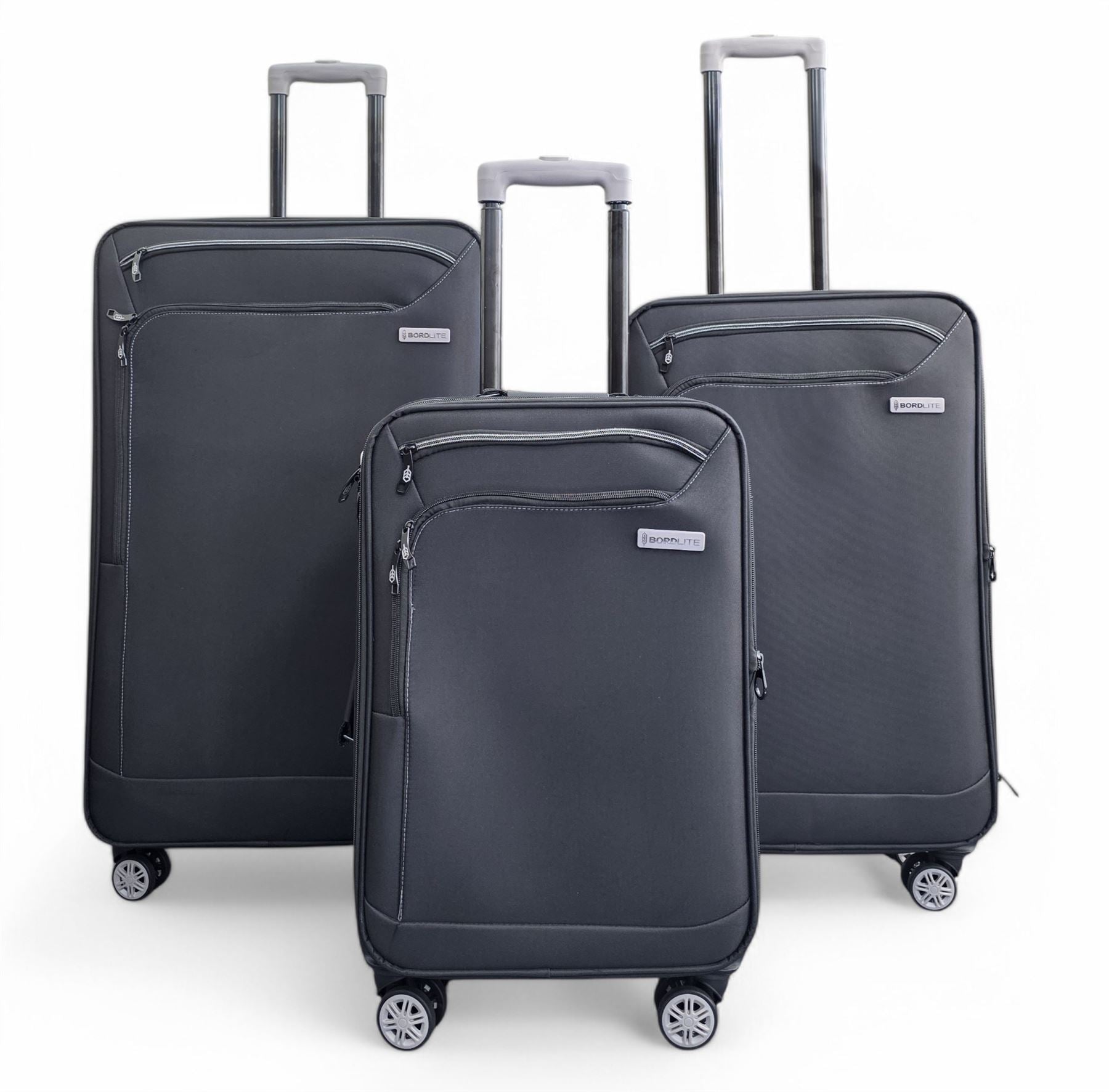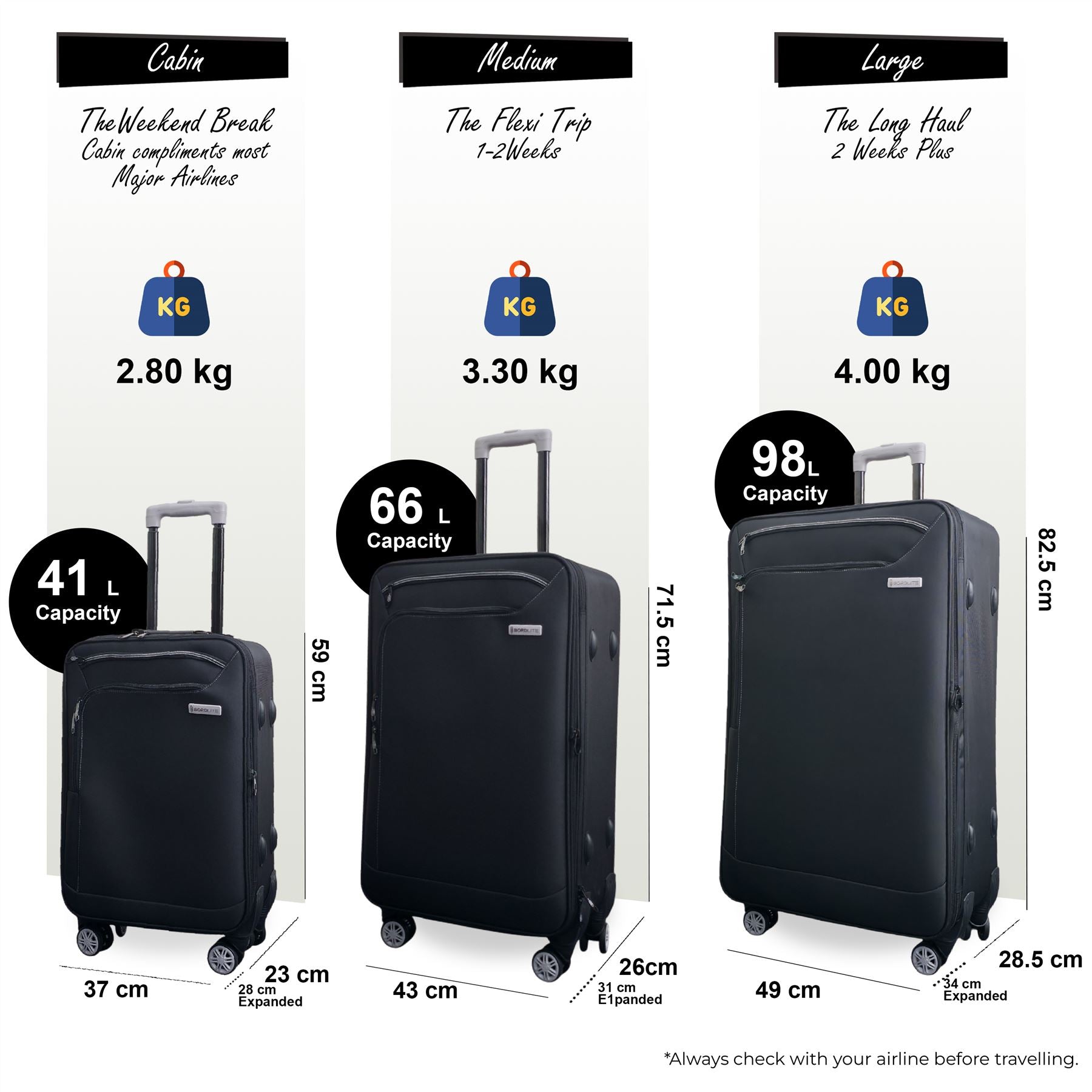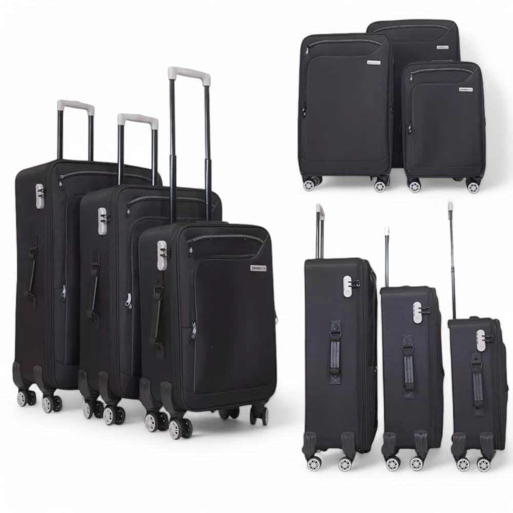 • Handa Set of 3 Soft Shell Suitcase in Black