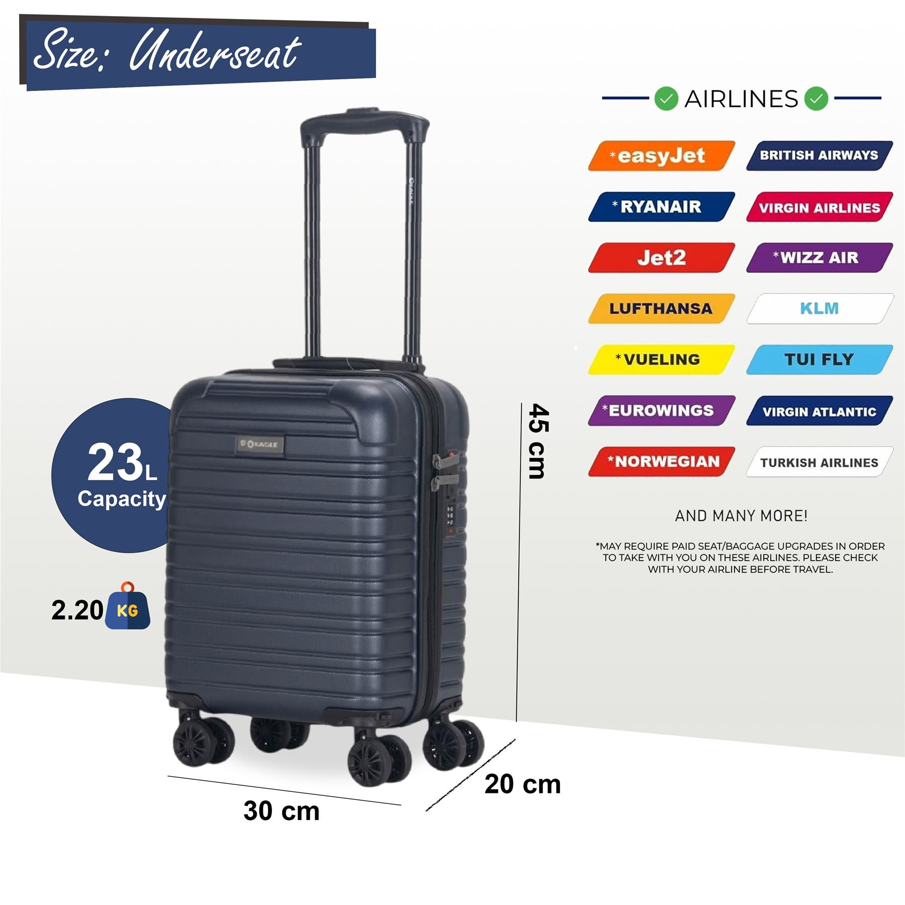 • Koga Underseat Hard Shell Suitcase in Navy