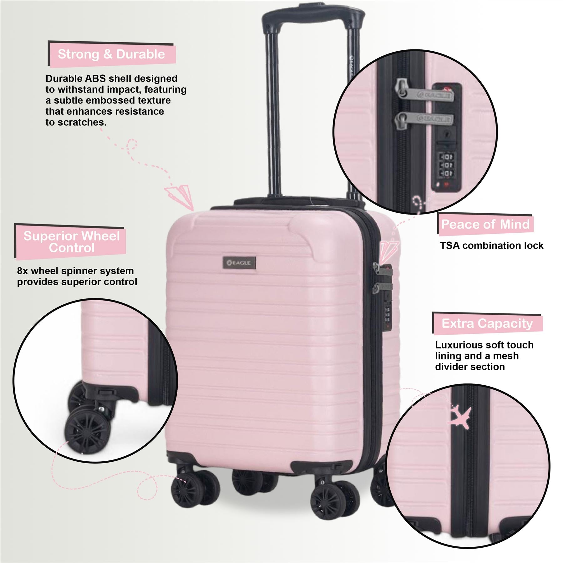 For your complete peace of mind, these cases come equipped with an integrated combination lock. These locks adhere to standards used in travel security, ensuring that your luggage can be legally and securely opened by aviation security agencies