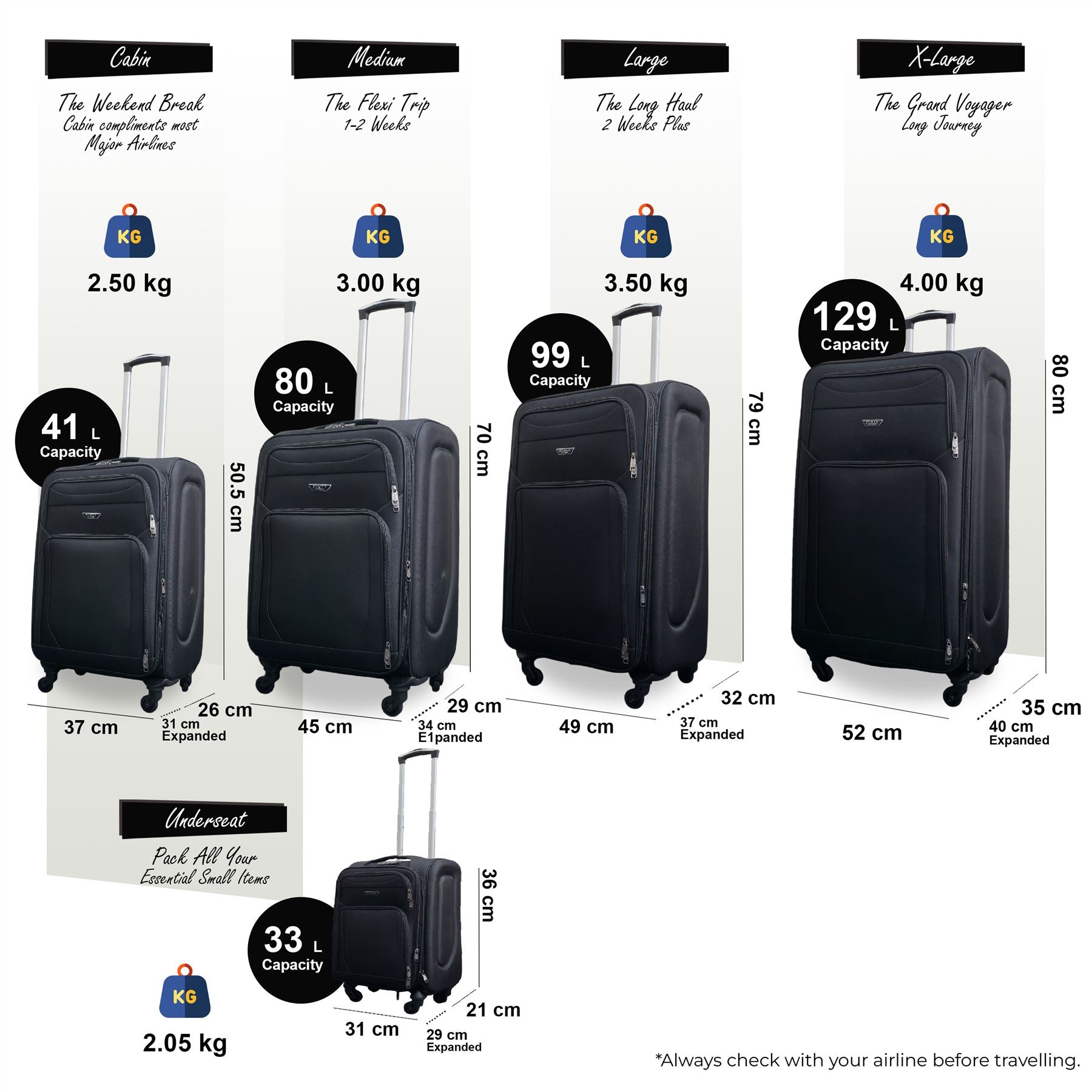 The expansion zip allows you to increase capacity by approximately 20% making room for souvenirs and extra belongings.