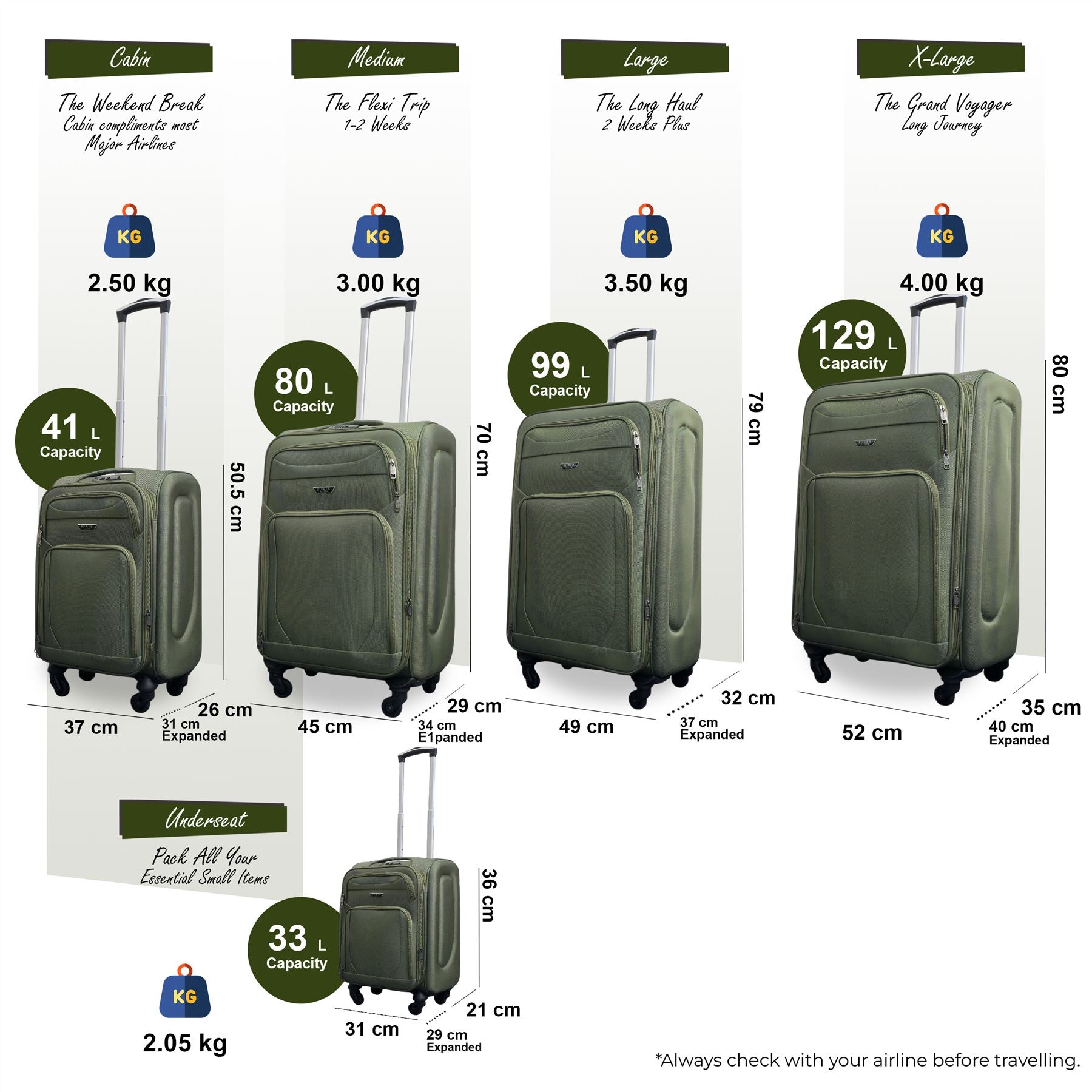 • Nagoya Set of 5 Soft Shell Suitcase in Khaki