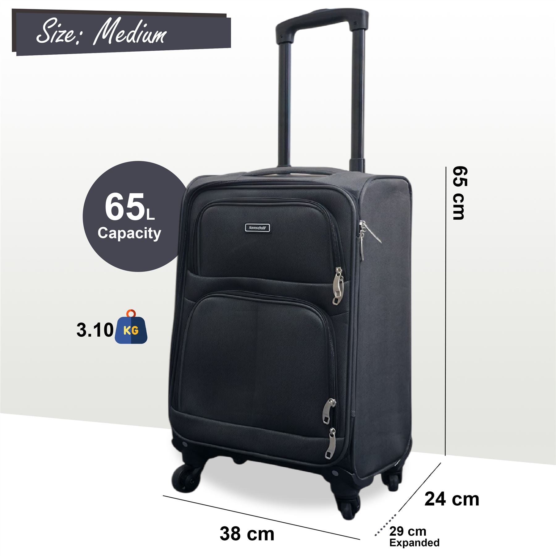 • Medium: 65 x 38 x 24 cm (Expands to 29 cm) | Weight: 3.1 kg | Capacity: 65L